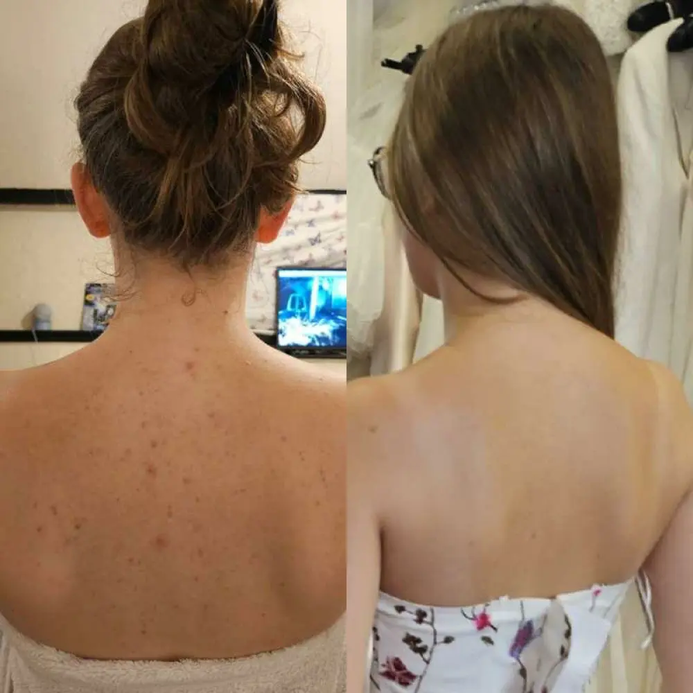 Već posle tri nedelje redovne upotrebe, koža na leđima postala je vidno čistija i ujednačenija. Crvenilo se povuklo, nepravilnosti su se značajno smanjile, a koža izgleda zdravije, glađe i negovanije. Prijatno sam iznenađena koliko su rezultati brzo vidljivi.
